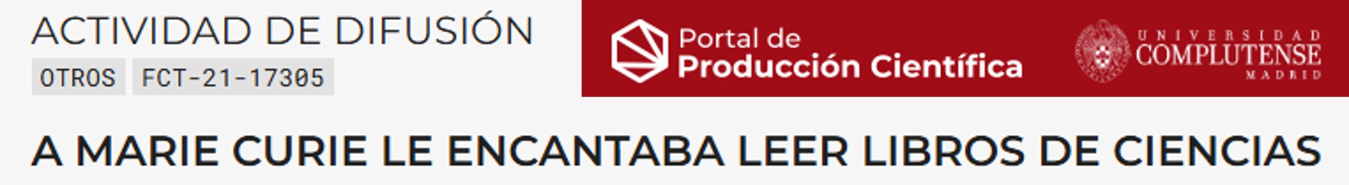 Proyecto multidisciplinar dirigido a centros educativos de la Comunidad de Madrid que tiene como objetivo general fomentar el desarrollo de conocimientos científico-técnicos a través de la figura de MarieCurie. Estudiante excepcional y apasionada por la lectura, fue la primera mujer en ganar el premio Nobel y la única que lo ha conseguido en dos ocasiones. Mediante la promoción de la lectura de libros de ciencia, la gamificación y la experimentación, se pretende fomentar la vocación científica y tecnológica en las aulas y entre los estudiantes de 3º y 4º de Educación Primaria, colectivo normalmente alejado de las acciones de divulgación científica. Para alcanzar esta meta el proyecto se sustenta en la elaboración de cuatro instrumentos didácticos: una exposición bibliográfica itinerante dedicada a Marie Curie con elementos de Realidad Aumentada, una guía de lectura sobre su aportación a la ciencia, un juego de preguntas a través de Kahoot y una propuesta de actividades prácticas sobre sus descubrimientos y hallazgos que puedan ser fácilmente replicables en casa o en la escuela. La iniciativa se basa en dos conceptos que no siempre están asociados: el conocimiento científico de las áreas CTIM como fundamento para el avance de la civilización y la biblioteca escolar como espacio para la emanación de la ciencia y el aprendizaje permanente. La originalidad y el carácter innovador del proyecto se sustenta en la participación ciudadana a través de la interacción intergeneracional y la intervención de personas voluntarias mayores de 55 años en la ejecución y diseño de las actividades previstas. De esta manera, se contribuye a promover el envejecimiento activo y socialmente contributivo, sin duda, otra de las grandes enseñanzas de Marie Curie que ni el sinfín de adversidades que sufrió fueron un impedimento para pasar a la historia como una de las grandes científicas y contribuir con sus logros y su lucha personal a mejorar y alargar la vida de las personas.